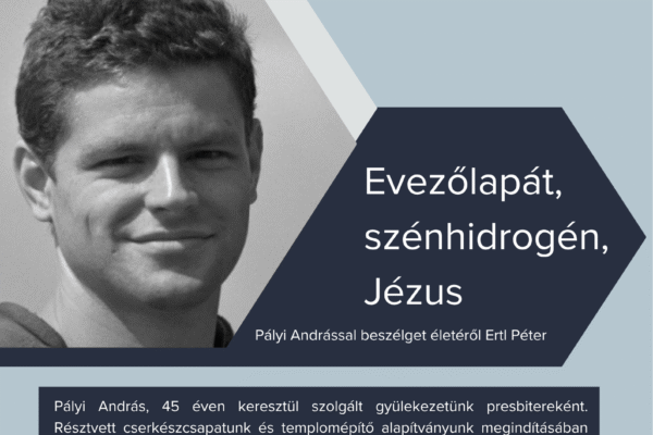 “Evezőlapát – szénhidrogén – Jézus” Pályi Andrással, gyülekezetünk tiszteletbeli presbiterével beszélget életéről Ertl Péter Pályi András, 45 éven keresztül szolgált gyülekezetünk presbitereként. Résztvett cserkészcsapatunk és templomépítő alapítványunk megindításában és megannyi módon gazdagította gyülekezetünk életét. Mindemellett kétszeres olimpikon (1968, 1972), a magyar geofizikusok közösségének megbecsült tagja. Izgalmas, tartalmas és érdekes életútját...