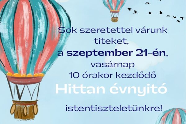 Szeretettel várjuk a hittanos gyermekeket és szüleiket 2025. szeptember 21-én a vasárnap délelőtt 10-től kezdődő tanévnyitó istentiszteletünkre amelyet gyerekistentiszteleti formában tartunk meg. Az óvodásoknak külön foglalkozással várjuk az alagsorban, illetve a gyermekmegőrző is nyitva lesz. Az alkalom után szeretetvendégséget is tartunk, amelyre szívesen fogadunk egy tál édes vagy sós süteményt!...
