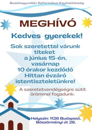 Szeretettel várunk minden hittanos gyermeket és szülőt (de természetesen minden kedves érdeklődőt) 2025. június 15-i 10 órai kezdetű istentiszteletünkre, amelyen hálát adunk az elmúlt tanévért, az együtt töltött időért, hittanoktatóink szeretetteljes és lelkes munkájáért.